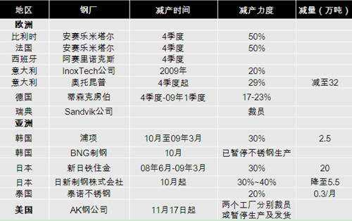 由于需求量以及不銹鋼價格的急劇下降,安賽樂米塔爾、AK鋼、浦項等全球不銹鋼生產(chǎn)商紛紛減產(chǎn),從公司公布的三季報來看,不銹鋼價格的驟跌已經(jīng)使得部分產(chǎn)品跌破成本線,有的公司由于資金周轉(zhuǎn)困難甚至已宣布裁員。從統(tǒng)計數(shù)據(jù)來看,今年第四季度全球不銹鋼產(chǎn)量預(yù)計較去年同比減少15.8%,全年產(chǎn)量預(yù)期減少3%以上。而盡管減產(chǎn)力度如此之大,仍沒有有效遏制住價格下跌的步伐。