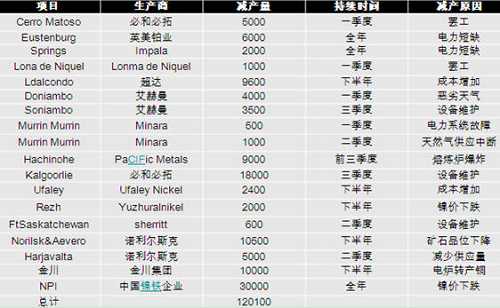 原料市場同樣令人堪憂,全球鎳市場2007年已供大于求,08年全球鎳廠商減產(chǎn)力度很大,諾里爾斯克、必和必拓、金川等世界最大鎳廠家都宣布減產(chǎn)計劃,已統(tǒng)計減產(chǎn)量預(yù)計超過全年產(chǎn)量的9%,但由于需求疲軟,加上新產(chǎn)能的增加,預(yù)計今年鎳仍會出現(xiàn)供大于求的局面。