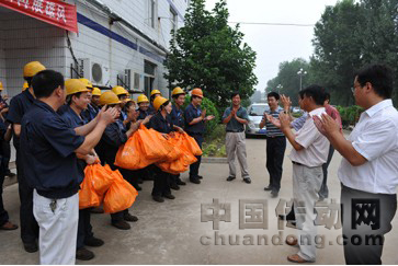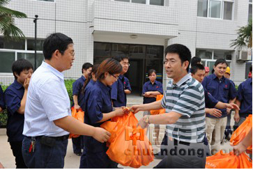 8月3日上午,集團公司黨委副書記、副總裁程利民,工會主席晉國運一行帶著防暑降溫物品(夏桑菊顆粒沖劑、風油精、人丹),親切看望慰問了奮戰(zhàn)在酷暑中的基一線員工。感謝大家為許繼發(fā)展做出的貢獻,叮囑員工在高溫天氣里要認真做好安全生產(chǎn),同時希望各單位干部持續(xù)不斷地改善員工的工作環(huán)境。集團公司領導的關懷令廣大基層干部員工深受感動,活動現(xiàn)場不斷響起熱烈的掌聲。大家紛紛表示,要以優(yōu)異成績向許繼建廠40周年獻禮,為許繼第三次創(chuàng)業(yè)作出新貢獻!