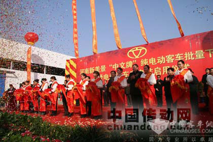 “得中原者得天下”,2011年1月1日,公歷新年的第一天,河南新美景客車制造有限公司在河南省許昌市襄城縣舉行慶典活動,慶祝公司首批20輛中文牌純電動客車隆重下線,河南省實現(xiàn)了純電動客車,中原制造的夢想。世界電動車協(xié)會主席、中國工程院院士陳清泉教授,國家工業(yè)與信息化部曹志恒副司長,時光科技有限公司執(zhí)行董事北京科技大學(xué)控制技術(shù)專家余達太教授,河南省人大農(nóng)工委副主任高德領(lǐng),中共河南省許昌市委李亞書記,許昌市人民政府張國暉代市長等省市縣有關(guān)領(lǐng)導(dǎo)及數(shù)十家有關(guān)合作企業(yè)代表參加并祝賀這一歷史性時刻,來自中央電視臺,中國客車網(wǎng)等媒體見證了這一重要事件。此舉表明,中文牌純電動客車已經(jīng)在中原腹地、具有2000多年歷史的河南許昌襄城扎根。