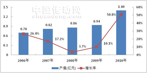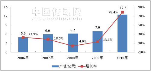 圖1 2006-2010年中國(guó)LED產(chǎn)業(yè)規(guī)模