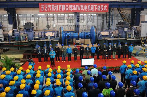 導語:中國東方電氣集團東方汽輪機有限公司具有完全自主知識產(chǎn)權的3兆瓦雙饋型風力發(fā)電機組在德陽順利下線。