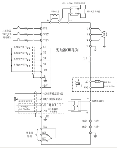 4、頻率給定方式:數(shù)字鍵盤給定、模擬量給定(電流、電壓信號)、遠程通訊給定、多段速給定、PID閉環(huán)給定等。