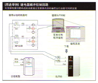 通過內(nèi)置的可編程功能可實現(xiàn)對變頻器的編程控制
